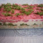 בתבנית שקופה ומרובעת מניחים בתחתית את תפוחי האדמה. מפזרים מעל מעט מלח ופלפל שחור. מערבבים את הגזר עם 2 כפות מיונז מעט מלח ומערבבים היטב. מסדרים בשכבה מעל תפוחי האדמה. מפזרים מעל שכבה יפה של בצל ירוק. מערבבים את הביצים עם 2 כפות מיונז ומעט מלח ופלפל ומסדרים שכבה מעל הבצל הירוק. מערבבים את הסלק עם 3 כפות מיונז ומעט מלח ומסדרים בשכבה מעל הביצים. מקשטים במעט שמיר.