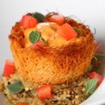2 מסדרים במסננת את האטריות כקן או עריסה מצמידים עם מסננת נוספת
