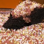 הציפוי שהילדים שלי הכי אוהבים - ממרח שוקולד השחר כשמעליו המון סוכריות צבעוניות.