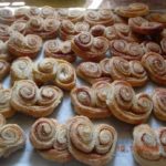 לגלגל משני הצדדים כמו רולדה לכיוון המרכז. לחתוך עוגיות בעובי של 1 ס"מ, להניח בתבנית