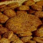 7. מסדרים את העוגיות על תבנית מרופדת בנייר אפייה. מורחים בביצה טרופה ומפזרים שומשום ביד נדיבה.