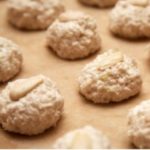 לפזר בעזרת כפית על תבנית עם נייר אפיה ברווחים גדולים.