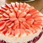 5. פורסים את התותים לפרוסות דקות ומניחים מעל העוגה