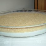 שבבצק מתקרר בשני התבניות לוקחים את התבנית הגדולה ומוסיפים את הקרם.