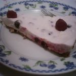 ממיסים את הג'לטין בחלב הרותח. מקציפים את השמנת עם הפודינג לקצף אחיד ומכניסים בינתיים למקרר. אחרי שהג'לטין נמס לחלוטין בחלב מוסיפים את הגבינה ומערבבים לתערובת אחידה. מקפלים פנימה את השמנת המוקצפת מהמקרר לקבלת תערובת אחידה. מוסיפים לתערובת את האוכמניות ומערבבים. יוצקים את התערובת על הבסיס ומסדרים מעל את הפטל לקישוט. מכניסים למקרר להתייצב למשך הלילה.