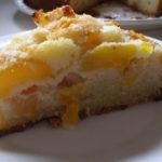 3.מצפים בסוכר דמררה את נייר האפיה מסדרים על התחתית את המשמשים כשהצד החתוך כלפי מעלה. מפזרים על המשמשמים את הסוכר גרגירי הוניל והקינמון.
