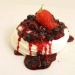 להרכבת המנה: מניחים מעט מהקרם על קערית מרנג, שופכים מעל את רוטב פירות יער ומגישים.
