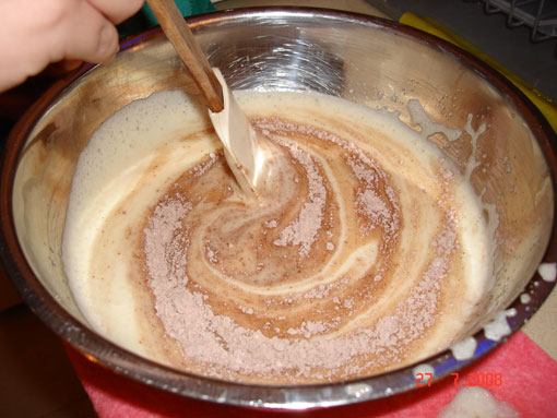 בינתיים לוקחים קערה ומערבבים בה את הקמח והשוקולית