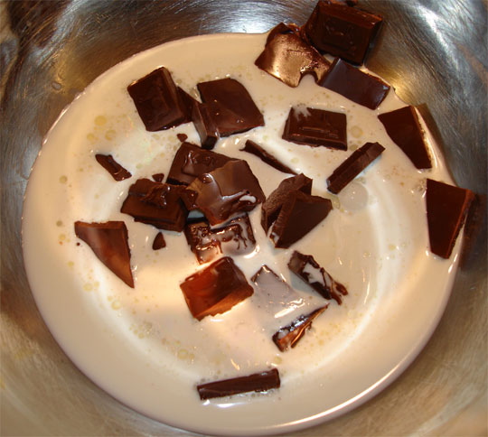 לוקחים 150 גר' שוקולד מריר שוברים מוסיפים את החצי שמנת מתוקה שנותרה וממיסים על הגז לאחר מכן שופכים על העוגה ונותנים לה להתקרר בימים חמים עדיף