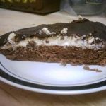 מקציפים כעת את השמנת עם פודינג הווניל והחלב לקבלת קצפת נוקשה ומכניסים למקרר. מערבבים את הברנדי עם כף אחת של מים ושופכים על כל העוגה המצוננת לאחר שיצאה מהתנור. מכניסים את העוגה למקרר למשך כחצי שעה. מכסים את העוגה עם קרם הווניל ומכניסים בחזרה למקרר.