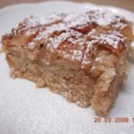 להוסיף לבצק 3/4 מכמות התפוחים ולערבב, להעביר לתבנית אפיה משומנת, מעל לסדר את