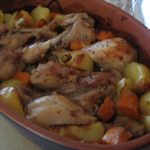 3. לפרוס את הירקות לטבול גם אותם ברוטב ולהעביר לתבנית לצד השוקיים.