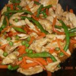 לטגן את הגזר כ-5 דקות, להוסיף שעועית ירוקה ואפונה להמשיך לטגן עוד מס' דקות.