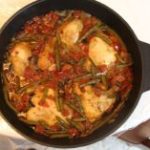 מפזרים את הירקות שבצלחת מעל העוף ואת הרוטב צילי ממלחים ומפלפלים ומוסיפים את ציר העוף,