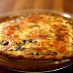 5. לוקחים את תבנית הפאי ומפזרים את הפיטריות /בצל ומעל שופכים את תערובת בביצים השמנת והשמנת
