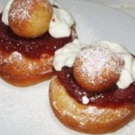5. הגשה: מניחים על הפפנאש בצלחת וממלאים את החור שבמרכזם בריבה או בפירות טריים. מעל מפזרים שמנת או קרם פרש ונהנים