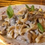 6. מוסיפים את הפסטה המסוננת לפיטריות וכף מנוזלי הבישול מבשלים יחדיו עוד כדקה