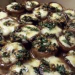 3.חותכים מהברי חתיכות קטנות בכדי להתאים לפטריה. מחדירים כל חתיכת גבינה לתוך החלק הפנימי של פטרייה.