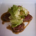 מערבבים את יתרת החומרים (למעט העלים הירוקים) לקבלת מעין רוטב סמיך. מזליפים מהרוטב על פרוסות פילה הבקר. מניחים מעט עלים ירוקים במרכז, בין נתחי הבקר. מגישים מייד.