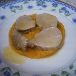 מניחים מפירה הבטטות במרכז הצלחת ועליו מניחים את פילה הלבן. יוצקים לכל מנה כשלוש כפות רוטב מנגו פיקנטי וחם ומגישים.