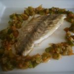 במחבת מחממים את יתרת שמן הזית. ממליחים ומפלפלים את הפילטים של הדג. מטגנים את פילה הדג כשתי דקות מכל צד. מניחים את פילה הדג במרכז צלחת ההגשה ומסביב מניחים את הירקות המבושלים.