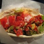 בפיתה טריה פותחים את החלק העליון וזולפים פנימה כפית וחצי טחינה 2 - 3 ציפסים מצופים