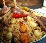 בצלחת הגשה מציעים את האורז מעליו את הגזר ומסדרים את הבשר