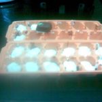 2. ממיסים (במיקרוגל, או בסיר כפול) את השוקולד הלבן ויוצקים אותו בזהירות לתוך השקעים, עד למחציתם. מעבירים את הכלי למקפיא ל-½ שעה של התגבשות.