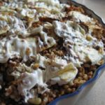 5. מערבבים את הכל ביחד ,פיטריות +כוסמת +הבלילה ומשטחים בתבנית האפייה.