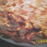 6. טורפים יחד את הביצים, השמנת החמוצה והגבינה הצהובה ויוצקים מעל לשכבת הפטריות.