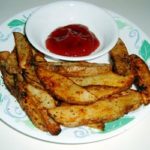 מגישים את הצ'יפס בקערה. ליד את מטבל העגבניות