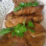 מגישים חם עם פירה או אורז או פלחי תפוחי אדמה בצד.
