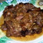 להפשיר בשר (קפוא) לילה במקרר. להסיר עור ושומן מיותרים. לפרוס לפרוסות בעובי כ-½1 ס"מ. לטגן את פרוסות הבשר על מחבת רחבה משני הצדדים (עד קבלת סימני חריכה קלים) להסיר מן המחבת לצלחת עם ניר סופג. לחתוך בצלים לקוביות ולהשחים (באותו השמן) לקראת סוף ההשחמה, להוסיף את פרוסות השום לטיגון קל. להעביר את הבצלים והשומים לסיר לחץ עם השמן הנותר. להוסיף את הבשר , היין הלבן והאדום מלח ופלפל. לסנן את פטריות השמפיניון מן הנוזלים ולחצות כל פטריה קטנה לשניים. להוסיף את הפטריות החצויות לסיר לערבב ולהוסיף מים. לפורר את קוביות "ניחוח צלי" ולהוסיף לסיר. לערבב ע"י סיבוב הסיר ולסגור מכסה סיר הלחץ. להביא לרתיחה ועם התחלת הרתיחה להעביר לאש הקטנה ביותר ולבשל 1 שעה.