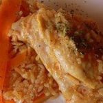 להוסיף אורז, רצועות פלפל, שום ותבלינים..לערבב