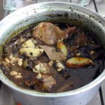 ממשיכים באידוי ,עד שאין נוזלים. מוסיפים את השמן,וממשיכים לאדות עד שיש עיסה אחידה ושחורה.מסירים מהאש ומקררים.מועכים היטיב מזלג לעיסה דייסתית.שומרים בקירור.