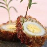 עם השמן מעל מסדרים את מחצית תערובת הבשר ומניחים את הביצים המבושלות
