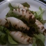 במרכז צלחת ההגשה מניחים חופן עלי חסה. עליהם מזליפים מעט שמן זית ומעט חומץ בלסמי. מניחים מעל את הקלמארי הצרוב ומגישים מייד.