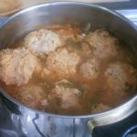 בסיר מחממים את שמן הזית. מטגנים קלות את הבצל הפרוס עד שנהיה שקוף. מוסיפים את השום הנותר ומערבבים. מוסיפים מים כדי שליש גובה הסיר ואת רסק העגבניות. מערבבים היטב ומביאים כדי רתיחה. מוסיפים את הפטרוזיליה ושוב מערבבים. צרים קציצות בעזרת ידיים רטובות מתערובת הבשר ומניחים בצורה מסודרת בסיר. ניתן בהחלט להניח ביותר משכבה אחת אך רק (!) אחרי ששכבה קודמת התבשלה לה כשתיים שלוש דקות (שלא יידבקו).