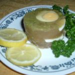 6. לאחר הרתיחה שופכים לתבנית פיירקס מוסיפים פרוסות ביצה קשה ומקררים
