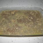 מוציאים את העצמות מהסיר ומגרדים מהם, לקרש חיתוך גדול, את כל הבשר והסחוסים. קוצצים דק יחד עם השום (שקולף מראש) ומחזירים לנוזלים בסיר הלחץ. כעת מוסיפים את הפלפל והמלח ומביאים לרתיחה ובישול של כחמש דקות ללא כיסוי הסיר. יוצקים לתבניות ומצננים לטמפרטורת החדר. מעבירים למקרר למשך הלילה.