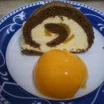 פותחים את המגבת עם שכבת השוקולד ספוג למשטח ישר. מורחים את המשטח בתערובת החמאה והביצים. לוקחים עוד שני חצאי אפרסקים ופורסים דק ככל הניתן. מפזרים את האפרסקים הפרוסים על המשטח. מגלגלים שוב ומכניסים למקרר לשלוש שעות לפחות.