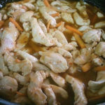 במחבת גדולה מחממים מעט שמן. מטגנים קלות את הגזר. מוסיפים את הבצל ומקפיצים כחצי דקה. מוסיפים את העוף ומקפיצים ביחד. מוסיפים את השום והזנגביל ושוב מקפיצים ביחד. מוסיפים את רוטב הצ'ילי ומבשלים ביחד תוך ערבוב כחמש דקות.