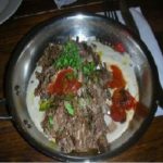 מסדרים על צלחת הגשה יפה את כל כמות הטחינה מעליה מפזרים את השווארמה שופכים את העגבניות עם הרוטב מהמצלית מפזרים מעט פטרויליה ומעט שמן זית מעל