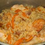 מחממים את השמן עם כפית מלח בסיר ברזל כבד. מוסיפים את השוקיים ומטגנים כחמש דקות יחד. מוסיפים את הבצל והשום ומטגנים עד שהבצל משחים היטב. מוסיפים את הגזר, הפטריות, התמר והעגבנייה ומערבבים היטב יחד. מוסיפים 2.75 כוסות מים ומערבבים. מוסיפים את יתרת המלח והפלפל השחור, מערבבים ומביאים לרתיחה. מוסיפים את האורז, מערבבים, מרתיחים, מכסים ומנמיכים את האש לבישול של עוד כעשרים דקות.