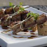 4. צולים את שיפודי המולארד על מחבת כבדה או על גריל פחם כ-3 דקות מכל צד, עד לדרגת "מידיום וול" (Medium Well).