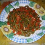 להוסיף 1 כוס רסק עגבניות ביתי עם ½ כפית מלח ומעט פלפל שחור טחון לערבב, להקטין את האש למינימום , לכסות ולאדות 5-8 דקות עד שהרוטב הצטמצם מאד. להוסיף פרוסות השום והשעועית העדינה המבושלת מראש, לערבב ולהגיש חם.