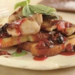 מסדרים את פרוסות ה"בריוש" על הצלחת. מניחים מעל את שקדי העגל ויוצקים את רוטב פירות היער מלמעלה.