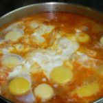לאחר 30 דקות שובר את הביצים בעדינות לתוך קערית ושופך לתוך הרוטב ולא לשבור את כיס החלמון