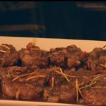 3. באותו סיר עם אותו שמן שבו סגרנו את הבשר לאדות את הירקות לפי סדר קשיות: בצל, שום, גזר, קולרבי, לפת, סלרי, תפו"א, כרישה, כאשר ממתינים כדקה שתיים בין מעבר מירק לירק לבסוף להוסיף את קוביות הכבד והריאות.