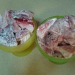 2.לערבב בקערה עם התותים את השמנת והסוכר ולערבב.